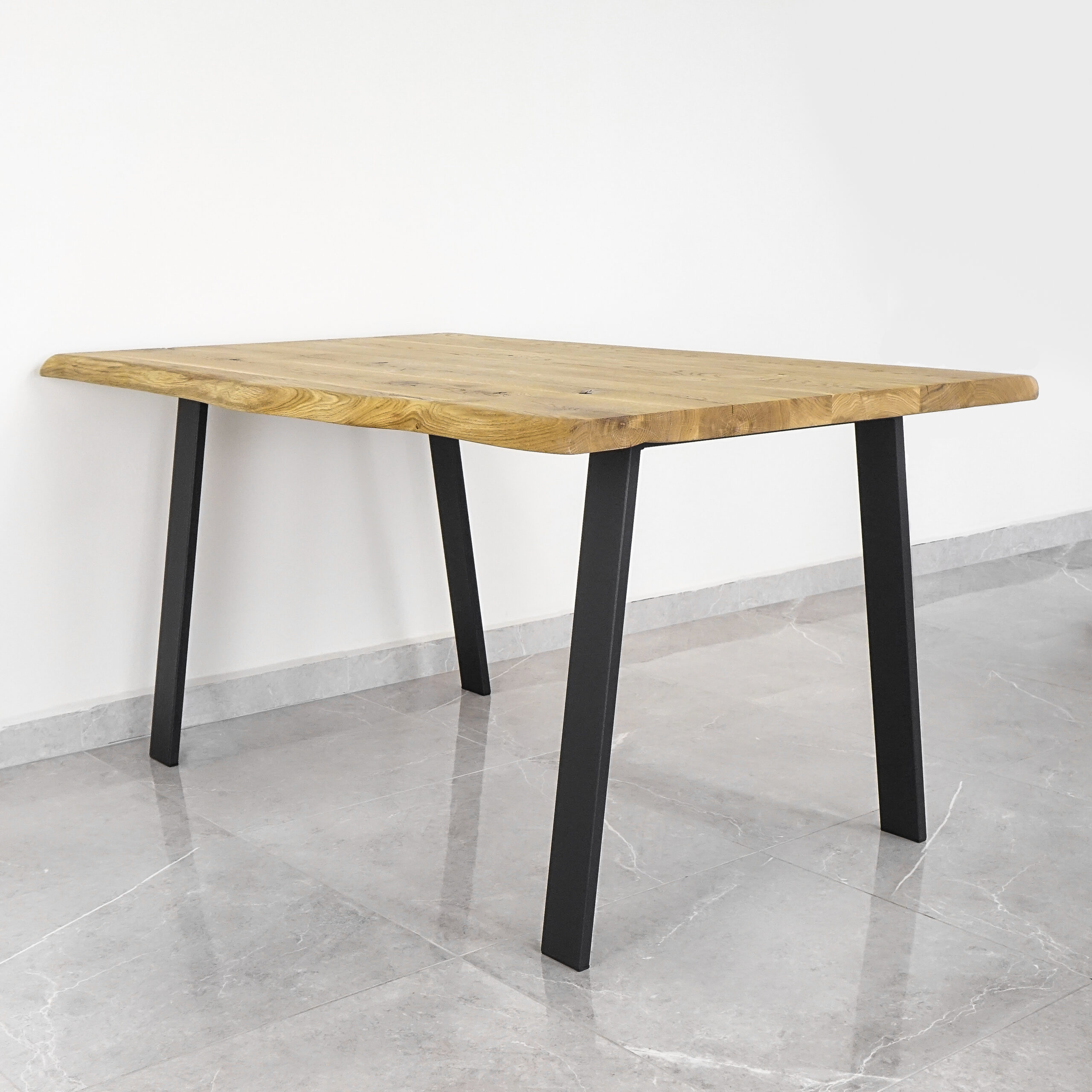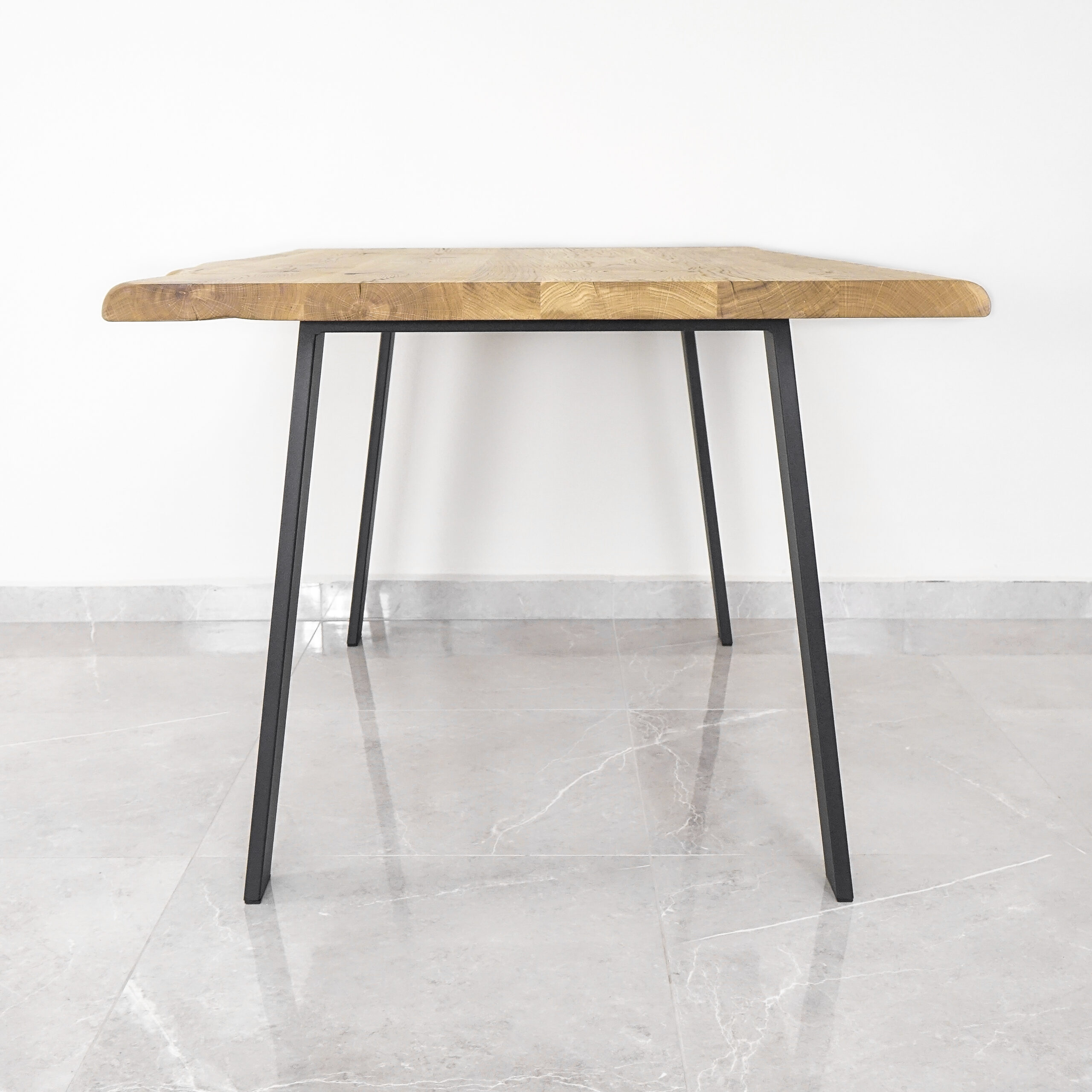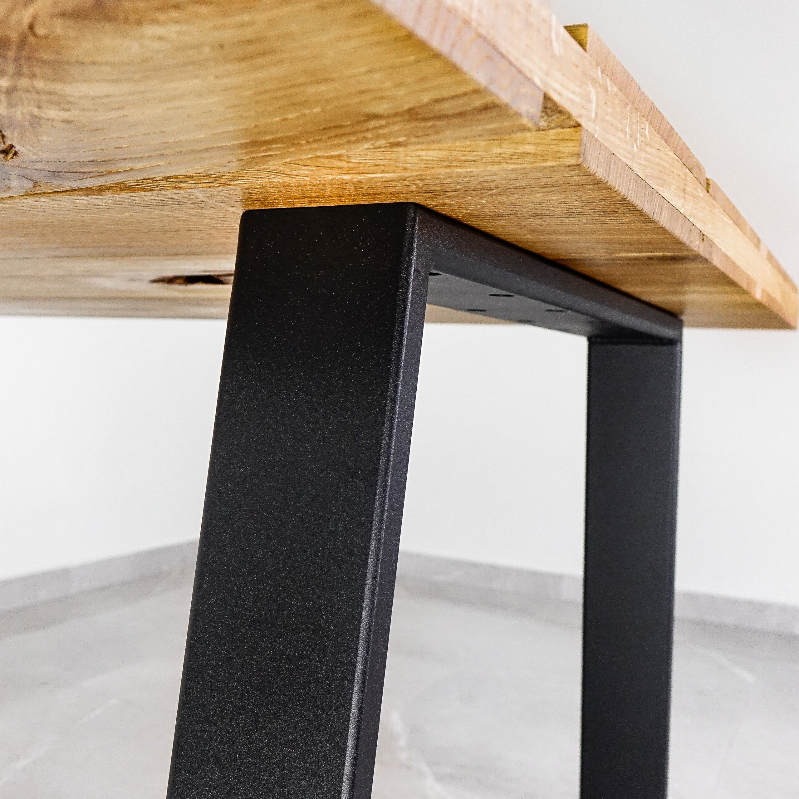 Naarmuuntumaton teräsjalka Slope on kevyt, mutta tukee vakaasti myös suuria tammisia pöytälevyjä. Rakenne on kestävä ja vakaa.