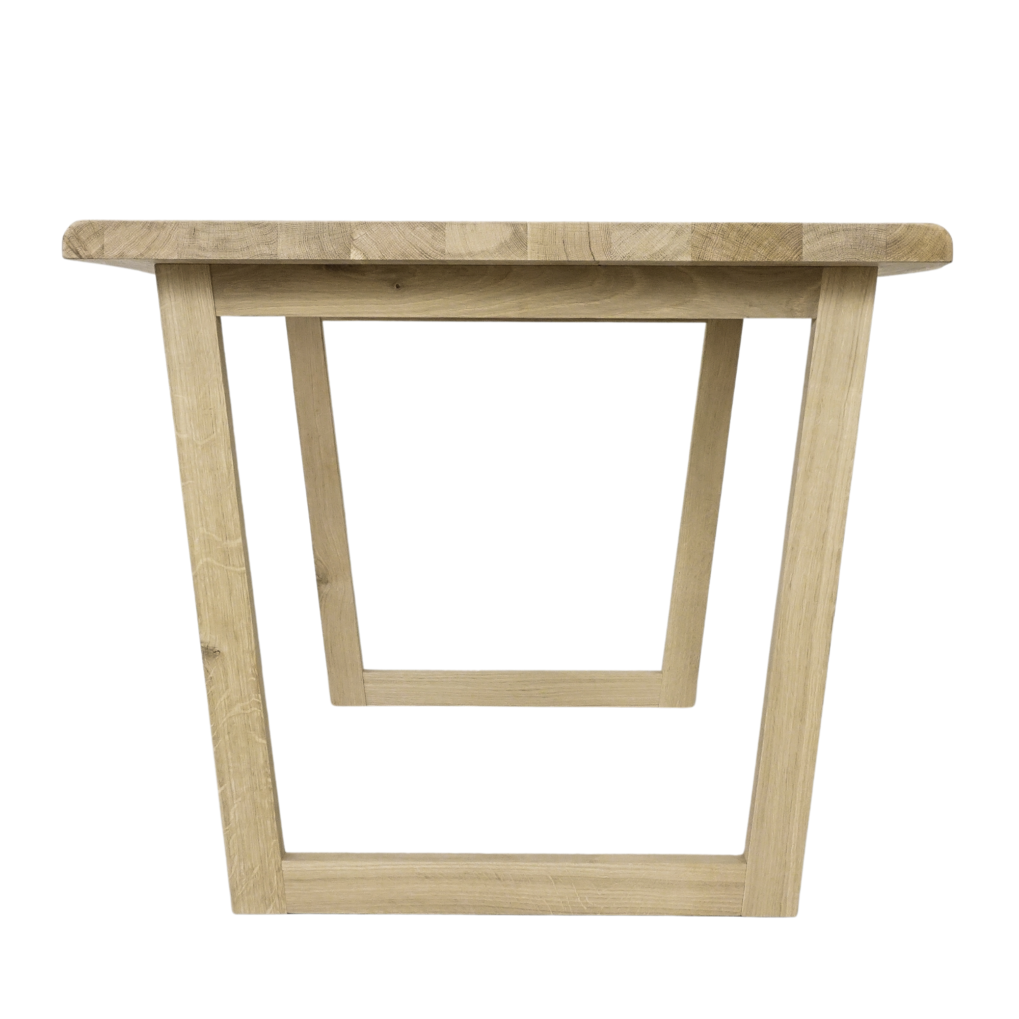 Massiivipuusta (tammi) valmistetut Trapets-malliset pöydänjalat (pakkauksessa 2 kpl) tukevat myös painavia pöytälevyjä ja kestävät oikein huollettuna pitkään. Näkyvissä olevat oksapaikat ja syykuvio johtuvat siitä, että materiaali on täysin luonnollinen – jokainen setti on tavallaan ainutlaatuinen.